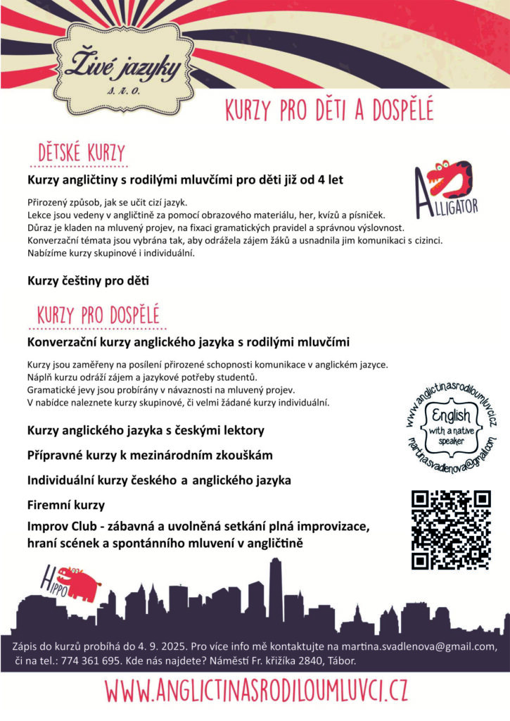 Neváhejte a přihlaste se do našich kurzů – rádi vás provedeme všemi nástrahami angličtiny s úsměvem a trpělivostí.